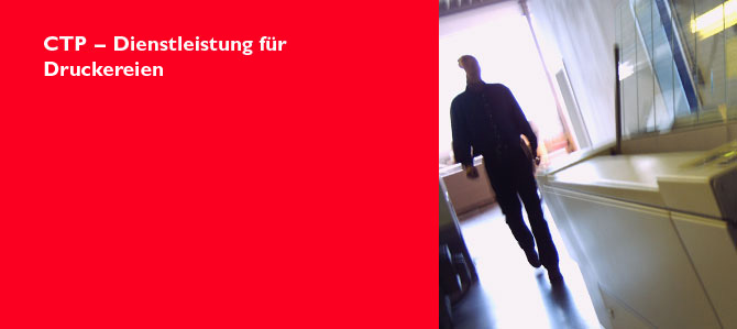 Unsere Kernkompetenz ist die digitalen Druckformherstellung. Daher bieten wir seit 1997 als eines der ersten Unternehmen CTP als Dienstleistung für Druckereien an.